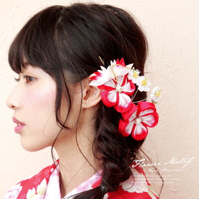 つまみ細工 髪飾り 赤 レッド 白 鶴 鳥 花 コーム ヘアアクセサリー 成人式 卒業式 七五三 【あす楽対応】