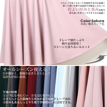パステルカラーの可愛らしい色合いから、 オフィスカジュアルにもピッタリなシックなカラーまで 豊富に取り揃えたきれいめフレアスカート さらにスカート丈を3type展開、 躍動感のあるひざ丈、上品なミモレ丈、個性派イレヘム丈 それぞれが美しいフレアを描くようなディティールを追求しました バイカラーコーデでカラフルに楽しむのもよし トップスがシンプルな時も丈やひらみがアクセントに◎ 組み合わせ自由自在のカラーボトムスはヘビロテ間違いなし! 発送方法 ゆうメール/宅急便発送 ■注意事項 こちらの製品は引っかかりやすい性質を持っております。