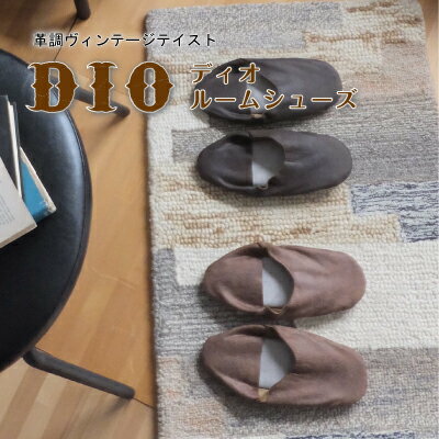 スリッパ ルームシューズ 革調 ヴィンテージ アンティーク レトロ カジュアル お洒落ディオ Dioルームシューズ【小型商品】 【】